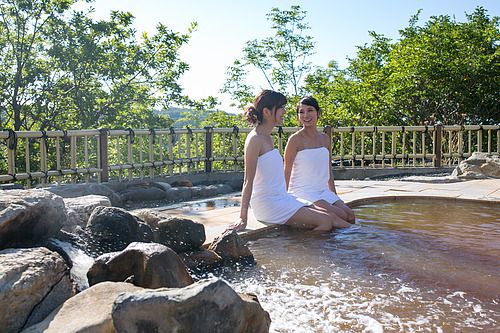 自然を眺望する自家源泉の掛け流し露天風呂、大浴場、サウナを完備しています。