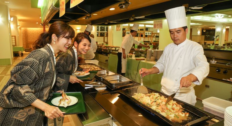 夕食・朝食共にさまざまなメニューをご用意しております。自慢の北海道味覚バイキングを是非お楽しみ下さい。