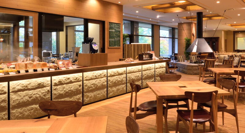 約15種を焼き上げるパン工房と定山渓の四季の移ろいを感じる足湯を併設したカフェです。 -