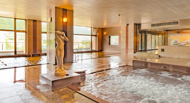 湯の浮力に身を任せ全身の力を抜く寝湯を含む5つの内風呂