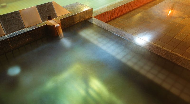 源泉100%かけ流しのお肌にやさしい温泉には、ジャグジーやサウナ、パウダールームも完備。やわらかないで湯でくつろぎのひとときを。