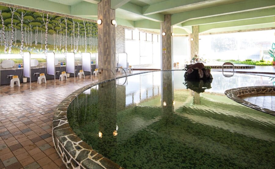 大浴場「火口原」は天然温泉で、男女それぞれに大きな内風呂1つと小さめの内風呂2つ、露天風呂と大きめのサウナがございます。