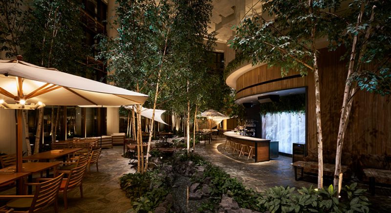 オーガニック野菜と道産素材にこだわった自然派レストラン。天井高14mのガラス壁からふりそそぐ光と緑に包まれる空間でご利用いただけます。