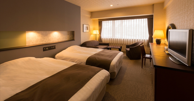 ベットが2台入った広さ27㎡の洋室ツインルーム