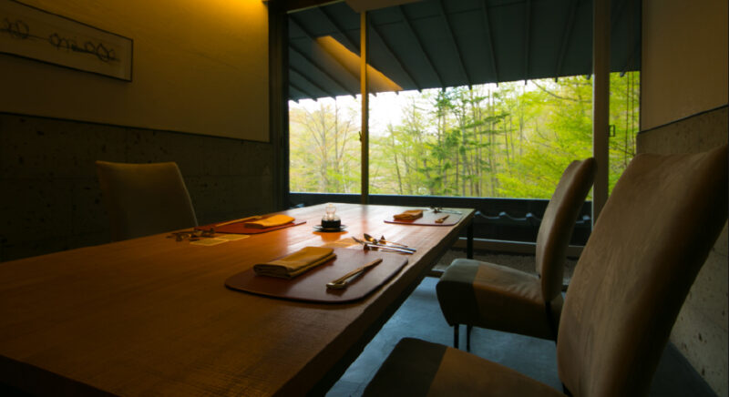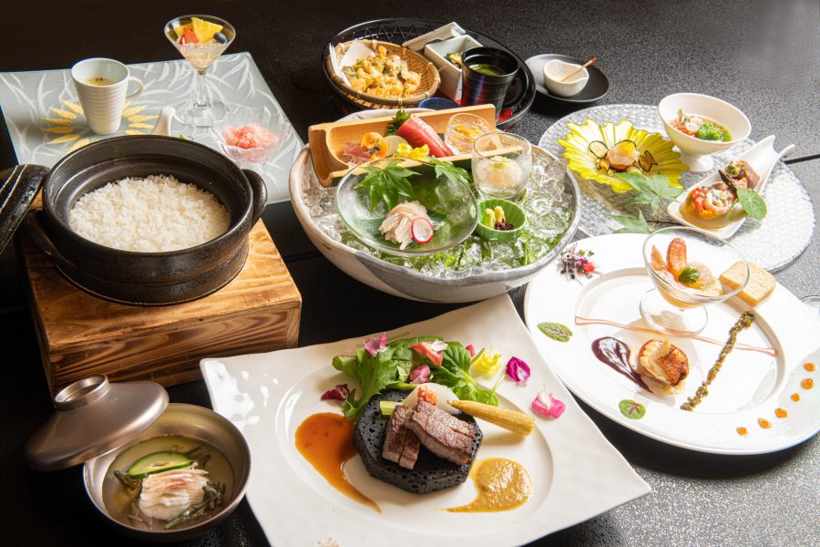 余計なものをそぎ落とす和食の「引き算」という概念と、伝統を重んじ、あたらしきも取り入れるフレンチの「ヌーベル・キュイジーヌ」という概念。それらを融合し、北海道の四季折々の旬食材を、素材の味を最も引き出す調理方法で味わう和洋会席料理です。