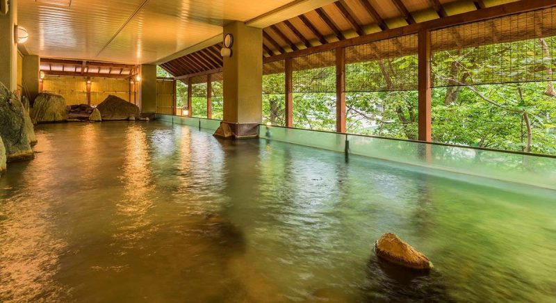 定山渓の大自然が目の前に広がる野趣あふれる露天風呂。