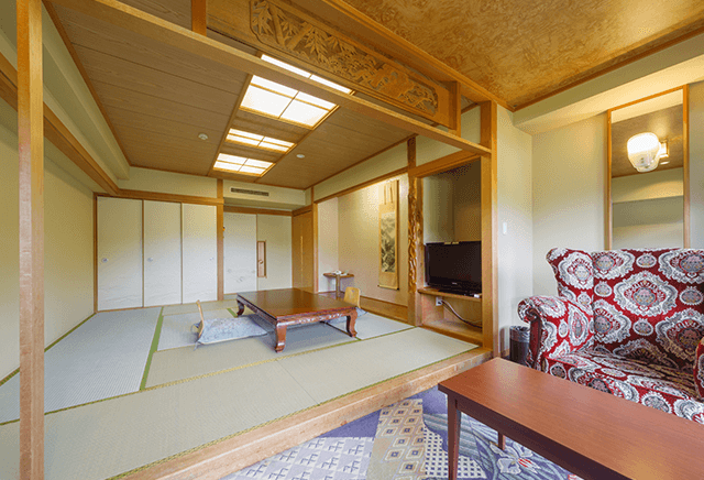 青畳と木の香りがゆかしさをかもし出す和室は、疲れた体を癒すのに最適です。日本風情に満ちた落ち着きあるお部屋で、深い寛ぎをどうぞ。