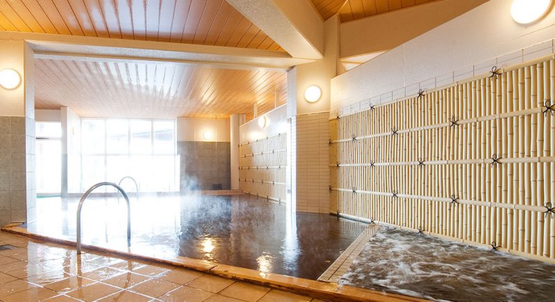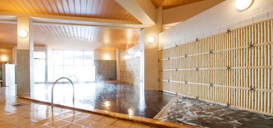 広々とした大浴場。大浴槽他、寝湯や歩行湯などの浴槽を備えています。