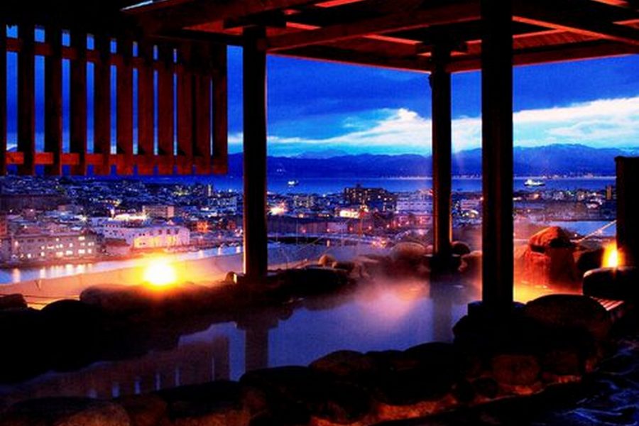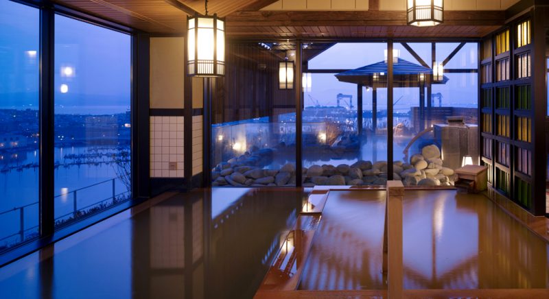 百万ドルとも称されるロマンチックな夜景を一望する開放感溢れる天然温泉大浴場でぬくもりに包まれ、体の心から温まって旅の疲れを癒せます。