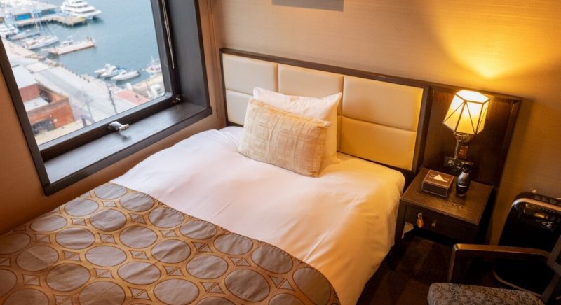 ベッドに横になりながらでも、函館市街の景色が存分に愉しめます。広さ 部屋タイプ 定員 15m² シングル 1名