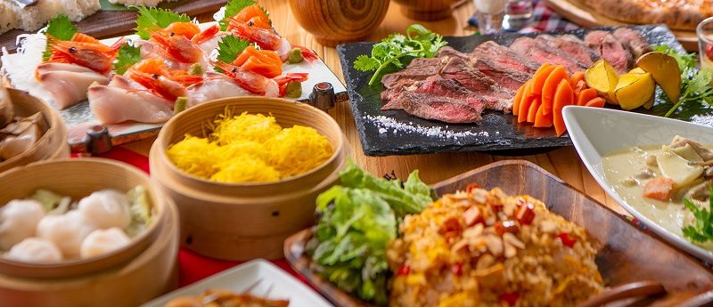 夕食は、和食・洋食・中華のほか、アイヌ料理にヒントを得た郷土料理や多国籍料理など約90種が並ぶビュッフェスタイル。