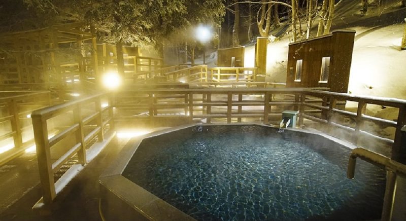 夜はライトアップされ、幻想的な雰囲気に変わります。温泉は全てかけ流し。