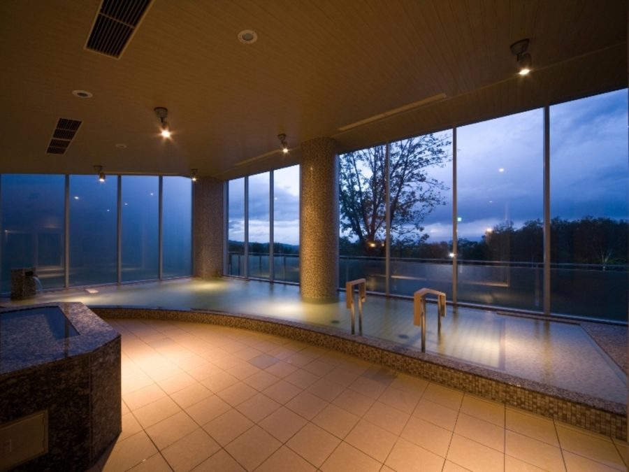 「紫彩の湯」の源泉は、富良野大地の地中1,010メートルにある湯脈。なめらかな肌ざわりの湯が心身の疲れを優しく癒してくれます。(ホテル温泉棟2階)