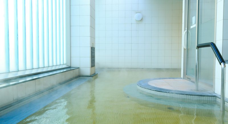 シャープでモダンな浴場は、高い天井の上が吹き抜けになっております。 旅行やお仕事の癒しと安らぎをお約束します。