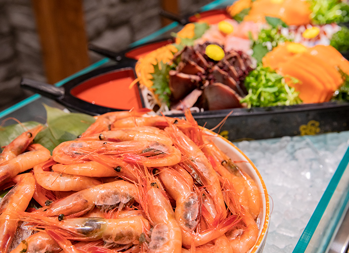 「ヒンナ」とは、アイヌ語で食事や食べ物に対しての感謝を示す言葉。「HINNAの森」は、大雪山の恵みが育んだ上川近郊の食材を使用した、ビュッフェスタイルのダイニングです。 出来立ての料理が味わえるライブキッチンや、お子様にもお喜びいただけるキッズメニューも豊富。和洋中のお料理は、約100品。もちろん、ドリンクメニューも充実しています。