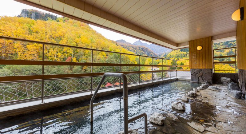朝風呂の爽快さが一番の湯。朝霧にかすむ渓谷の美しさに、心も体も目覚めます。 入浴時間 5:00-12:30 / 15:00-24:00
