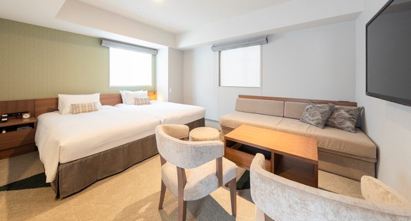 ベッド2台 + スタジオベッド1台追加で3名様でのご宿泊も可能です。広さ 部屋タイプ 定員 26m² プレミアツイン 2~3名