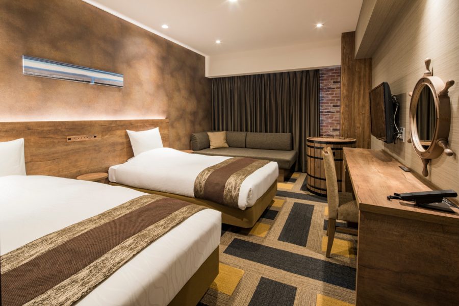 グレーカラーで統一した配色に、ノスタルジーを感じるこだわりのインテリアが、スタイリッシュで落ち着きのある空間を演出いたします。広さ 部屋タイプ 定員 24m² ツイン 2~3名