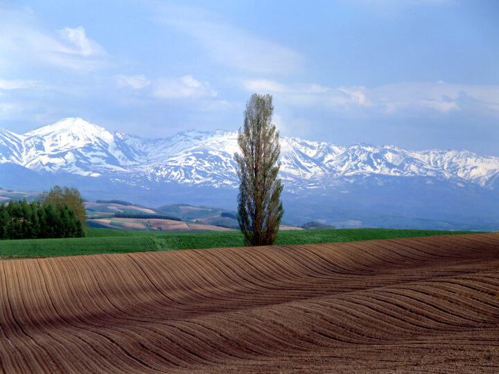 「丘のまち美瑛」まるで絵はがきのようで息を呑む美しさ。収穫の時期の9月~10月は、こがね色に、丘のあちこちを彩り、夏とは違った良さの情緒あるのどかな風景が広がります。「ケンとメリーの木」や「セブンスターの木」などテレビCMやポスターにも使われた有名な木や展望台が点在し、周辺はフォトジェニックなスポットが満載です。