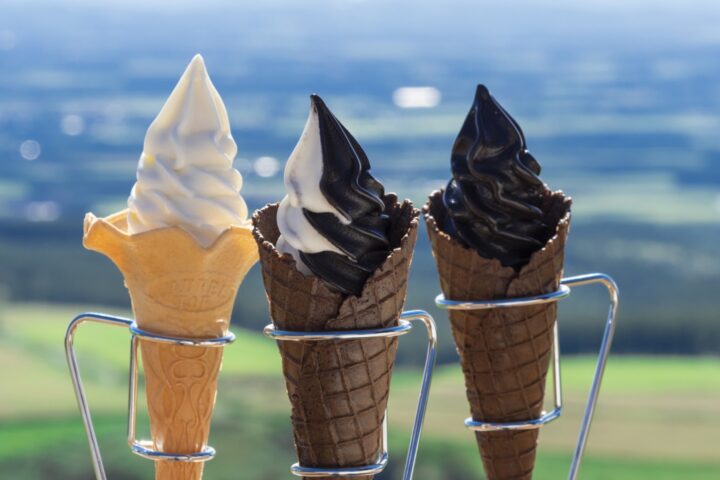 日本一広い公共牧場で牛がのんびりと寛ぐ牧歌的な光景はまさに北海道らしさそのもの!見渡す限り続く緑の芝のじゅうたんは圧巻です!室内からでもダイナミックな景色を眺められるナイタイテラスの展望カフェでは牛をモチーフにしたミックスソフトクリームが好評!