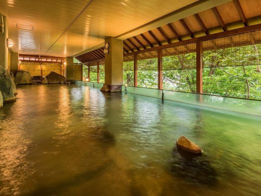 館内にはスポーツ施設が完備され、夜には森の中の露天風呂の周りの木々はホタルをイメージしたイルミネーションで彩られます。