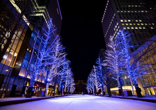 ★日本三大イルミネーション★駅前通や南一条通では街路樹に施されたイルミネーションが街を彩り人々を魅了します。真っ白な雪と色とりどりのイルミネーションが生み出す美しい光景は札幌ならではの冬の風物詩です。