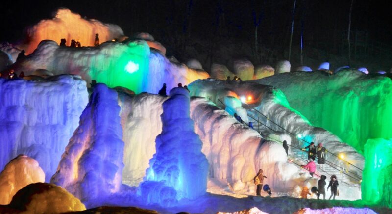 約10,000平方メートルもの広さを誇る石狩川の河川敷の会場に、極寒の自然を生かして作られた多彩な氷像が並びます。氷の展望台や氷柱、氷のトンネル、アイスドームなど迫力満点なスケールに感嘆!夜には七色のライトアップによって幻想的な光景が作り出され、日中とはまた違った雰囲気を楽しむことができます。2泊目以降は、旭川、札幌のお好きなホテルを選べるのも嬉しいポイント!