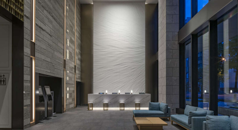 華やかな街から一歩入るとまるで別世界のような上質空間。開放的なロビーには、人々が集まる暖炉、北海道の雰囲気を演出するアートワークが施され、木や自然素材のぬくもりの中にレンガやアイアンなどの素材が融合し、モダンで洗練された雰囲気に。ほかにも、明るく開放的なレストランや北海道の森の中を散策するイメージの廊下など、北国の空気感をホテルのどこに居ても感じられるデザイン。プラスαのサービス、ホテルならではの非日常間を感じながら自然素材のぬくもりで安らぎのひと時のステイを。