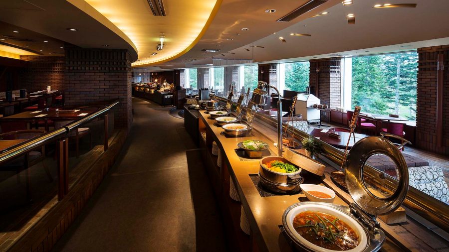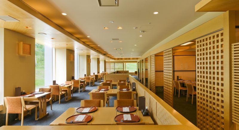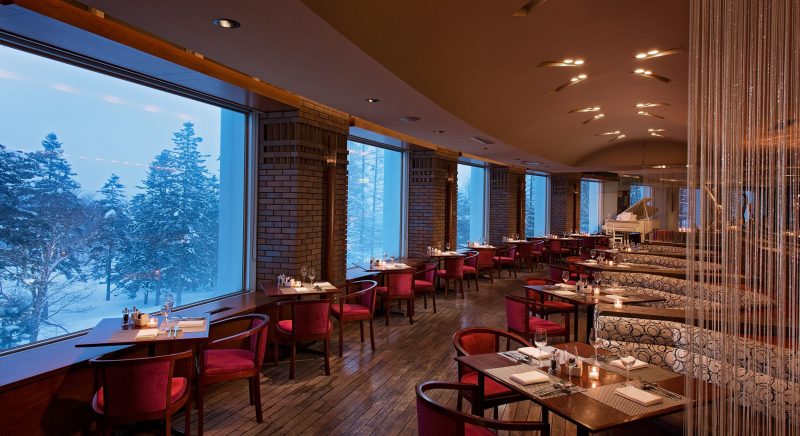 羊蹄山を望む広めのブース席で地元の食材を楽しめるレストラン。約50種類からなる朝食も大人気。冬季限定営業。