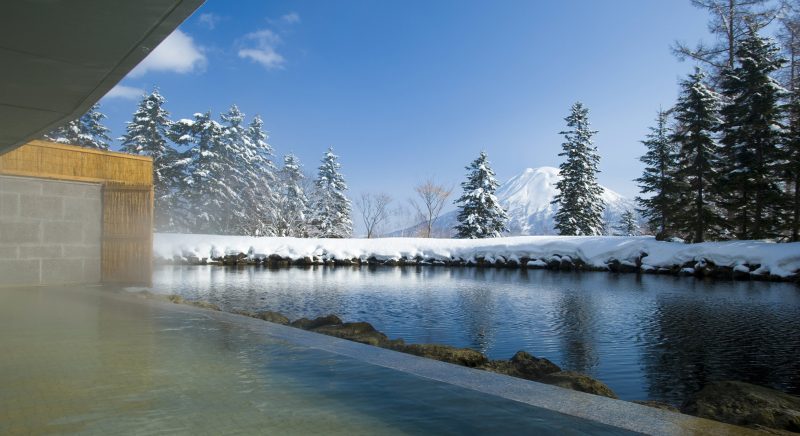 羊蹄山を眺めながら入る露天風呂は開放感いっぱいでリラックス効果抜群!スキーで疲れた身体を優しく癒してくれます。