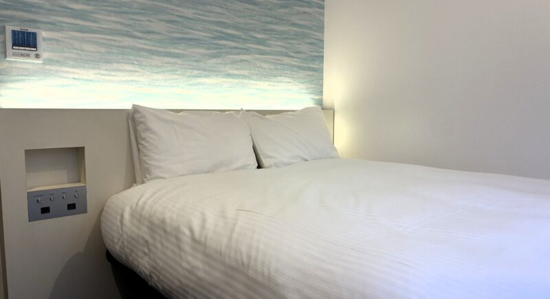 140cm幅のセミダブルベッドを備えたシンプルで快適なお部屋です。シモンズベッドとセパレートタイプのバス・トイレで快適にお過ごしください。