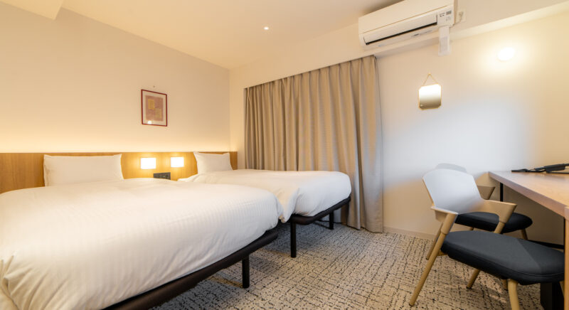 ベッドが離れたセパレートタイプ。カップルやご友人同士での滞在におすすめです。シモンズベッドとセパレートタイプのバス・トイレで快適にお過ごしください。