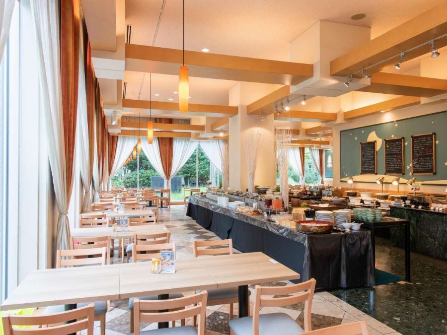 陽光が降り注ぐ明るいブッフェレストラン。約120種類の元気のでる朝食をお楽しみください。