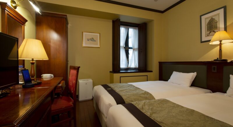 ベッドをハリウッドスタイルに設置し、機能性を重視したツインルームです。シモンズ社製マットレスとウルトラファインミスト「ミラブル」を導入しています。