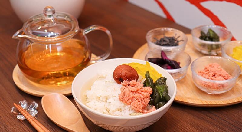 レストランCONA(1階)にてだし茶漬けをご用意しております。ちょっと小腹がすいたというときにピッタリ!