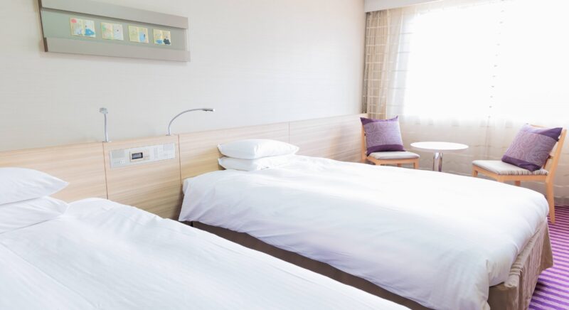 客室備品が充実した落ち着いたデザインのお部屋です。3名利用は、ツインルームにスタッキングベッド(正ベッドと同サイズ)となります。