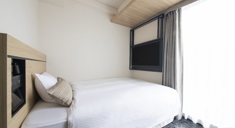 200cm × 110cmのベッドが2台設置されています。コンパクトですが機能的なお部屋です。
