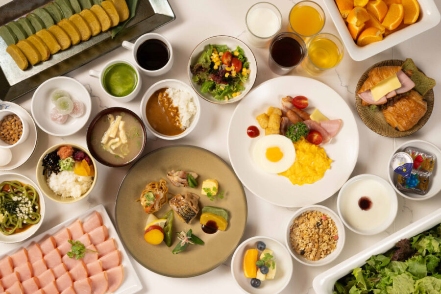 京野菜や湯葉など京の食材を使用したおかずをはじめ、色とりどりのごはんのお供が充実した和・洋ビュッフェをお楽しみください。