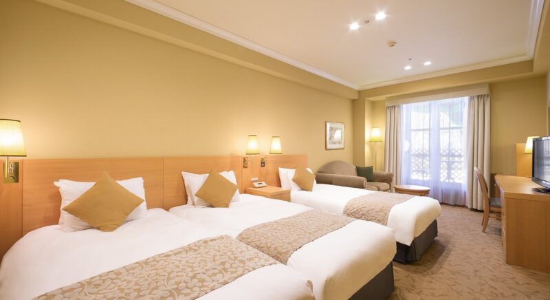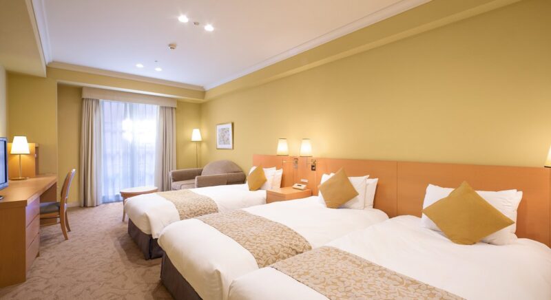 オリエンタルフロア(5階)にあるトリプルベッドのお部屋です。パティオ(中庭)に面したナチュラルな色調をベースとした優しい空間でご家族やグループの滞在をお楽しみください。
