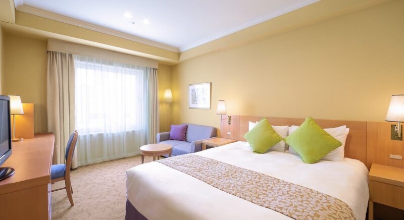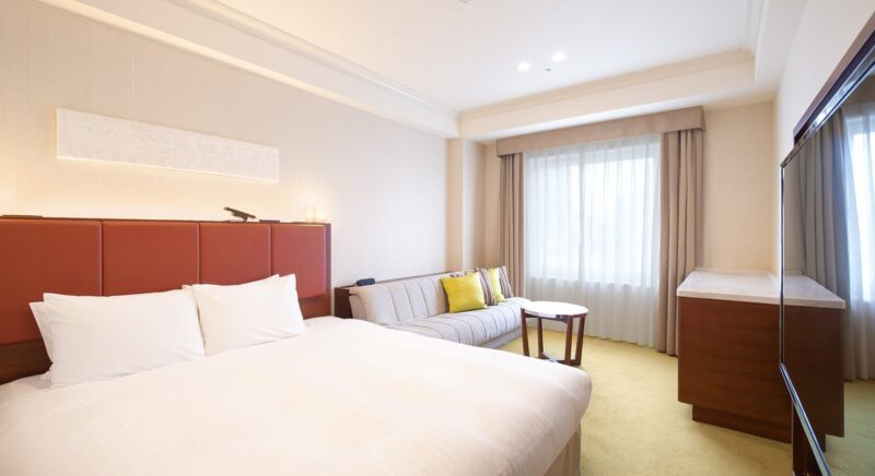 オリエンタルクオリティフロア(6~9階)にあるキングサイズベッドのお部屋です。こだわりのシモンズ社製ベッドで上質な安らぎをご堪能ください。