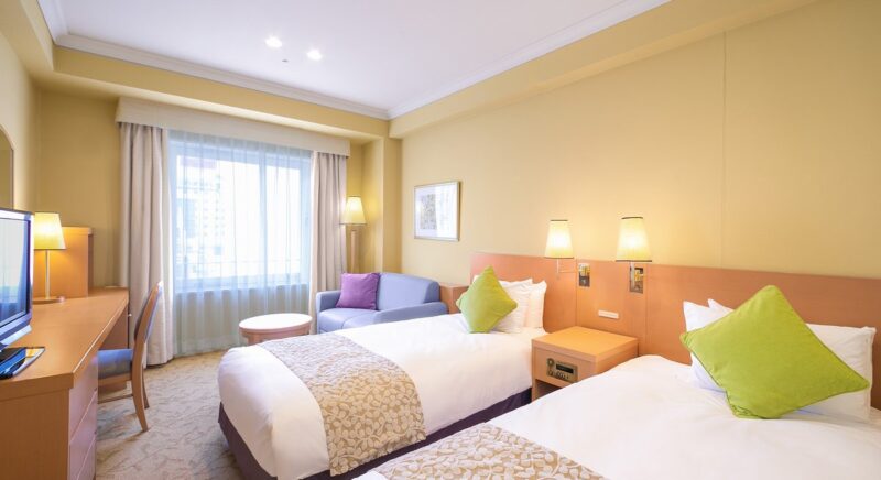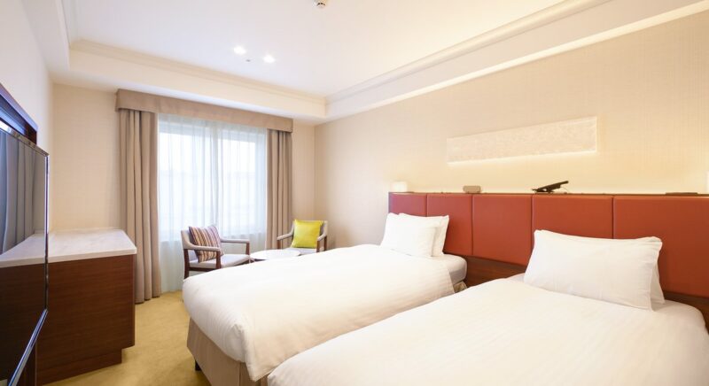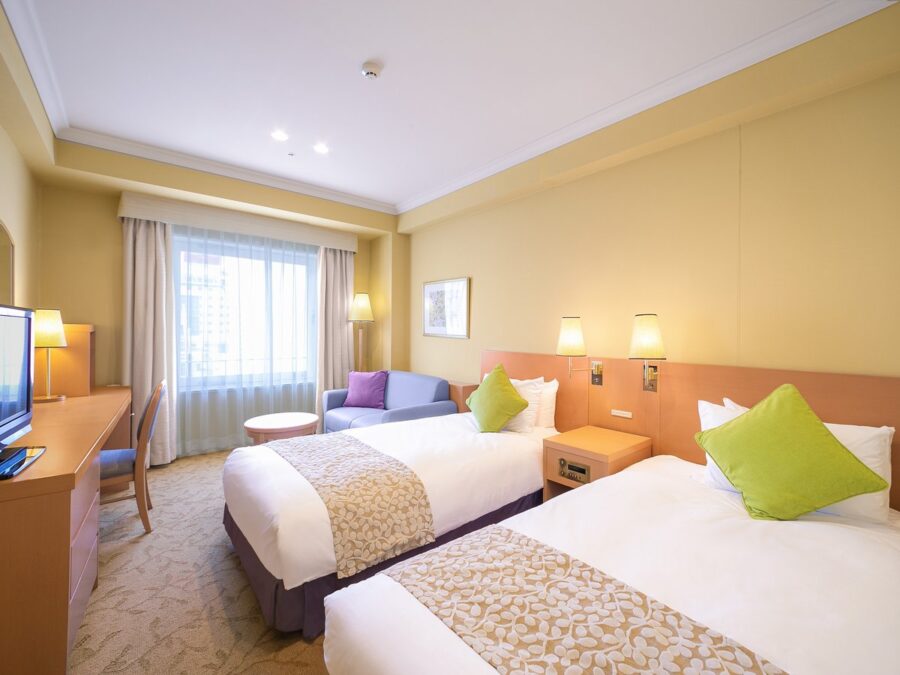 オリエンタルフロア(4~5階)にあるツインベッドのお部屋です。賑やかな街並みから解放された静かな空間で快適にお過ごしください。