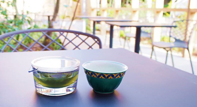 ラウンジでは茶葉と冷茶をご用意し、お茶バーをご提供しています。天保三年創業の京都老舗茶屋・伊藤久右衛門のこだわりの茶葉を使用しております。