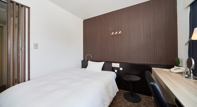 ベッドサイズは120cm、シンプルで快適な空間でゆっくりお寛ぎください。
