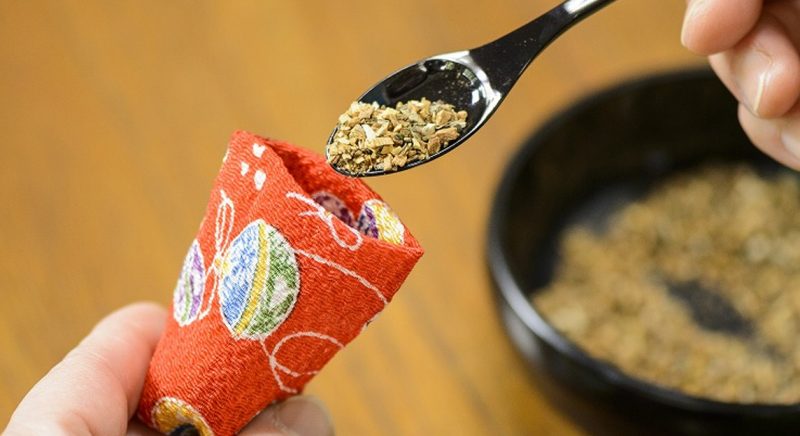 自分だけの「香り袋」をつくるアクティビティ。仏教の伝来とともに海外からの渡来品として日本に渡ったお香は、室町時代には「香道」が確立されるほど奥深いものに。自分の好きな香りを選び、箪笥などにちょっと忍ばせておく可愛らしい袋をつくりましょう。