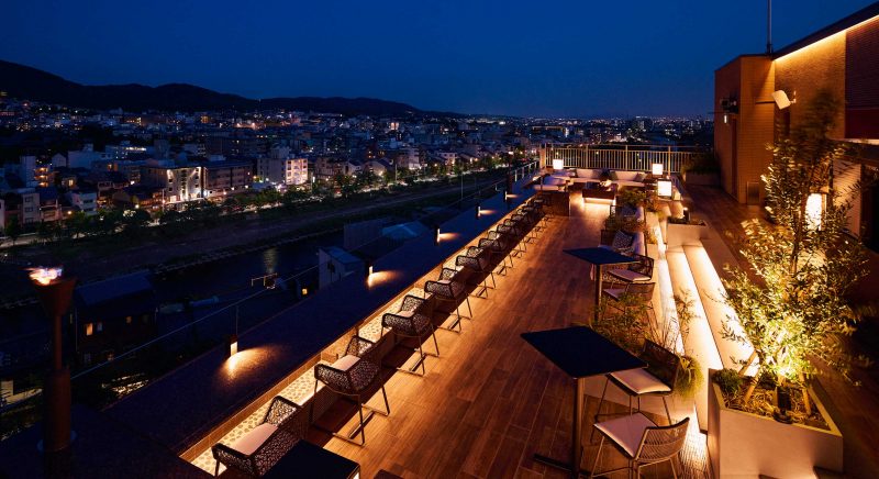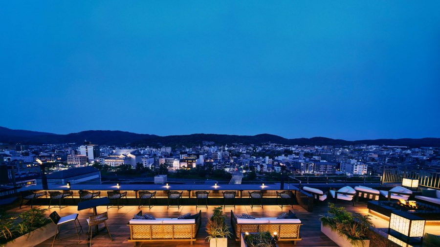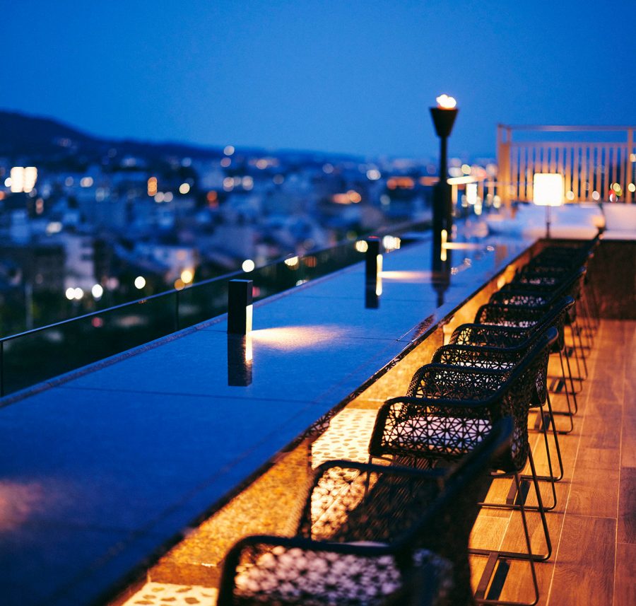 大空を仰ぎ京都の町並みを一望する、ルーフトップ・ラウンジ「空庭テラス」は第二のリビング空間。開放感に満ちた天空のラウンジで京の風に身をまかせ、ゆっくりとうつろう古都の表情をお楽しみください。