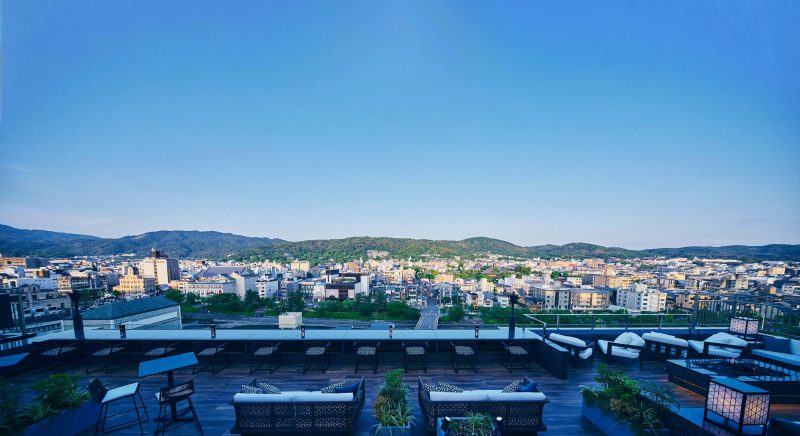 広がる青空から、夕焼け、そして藍色に染まる京の夜空へ。空庭テラスでしか味わえない、ロマンティックな京都の魅力を体感してください。