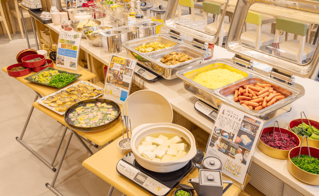 ホテル2階朝食会場にて、フレッサインの日替わりビュッフェをご用意しております。