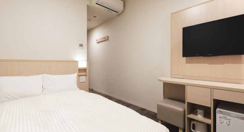 デザイナー監修のシンプル且つスタイリッシュな客室です。サータ社製ベッドを導入、加湿機能付き空気清浄機を完備。