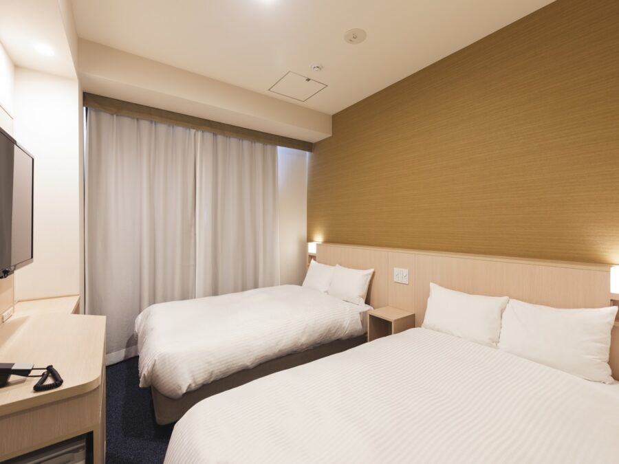 広々としたゆったりスペースに幅120㎝のベッドを2台配置したお部屋です。サータ社製ベッドを導入、加湿機能付き空気清浄機を完備。