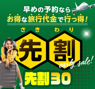 出発30日以上前ならお得♪1つのベッドでよりお得に!リーズナブルにご提供!自由に選べるおススメホテルをLineup!セミダブルベッドルームのお部屋でお友達・カップルでお得に満喫しよう♪